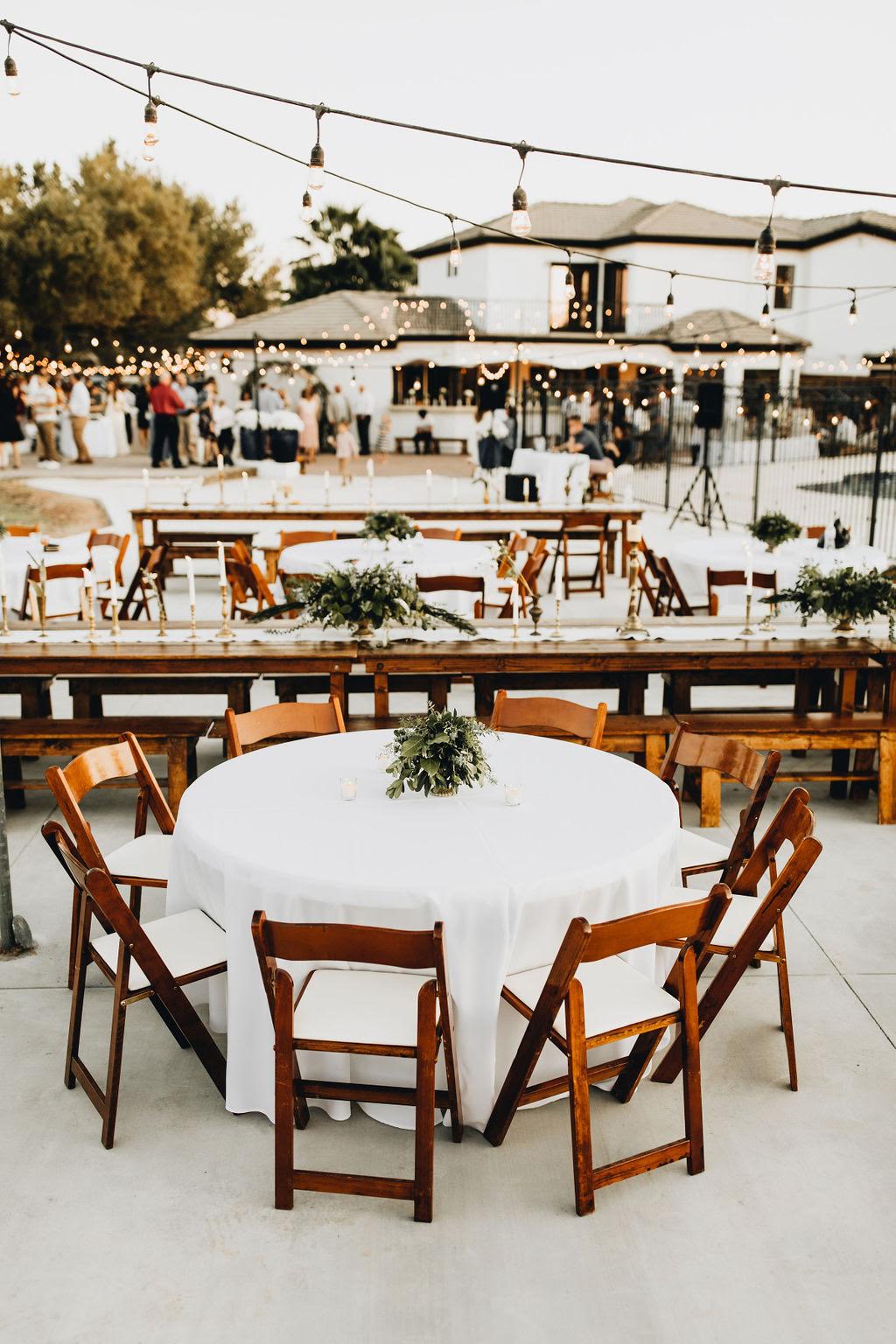 These folding chairs are versatile seating option for your wedding or event. Whether they are used for alone for wedding ceremonial seating or paired with our Wood Farm Tables for guest seating, our Fruitwood Folding Chairs will add a classic touch to your event.