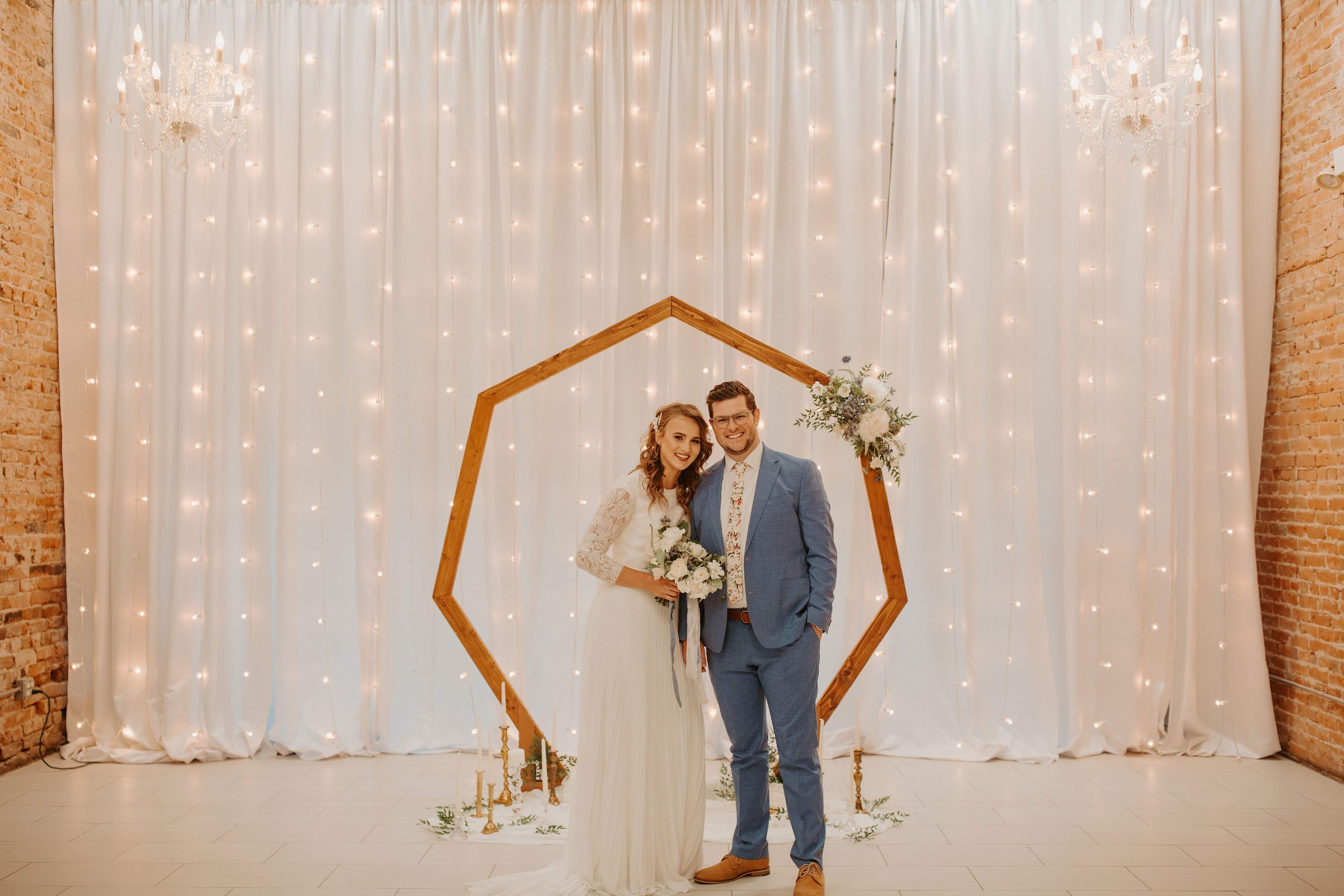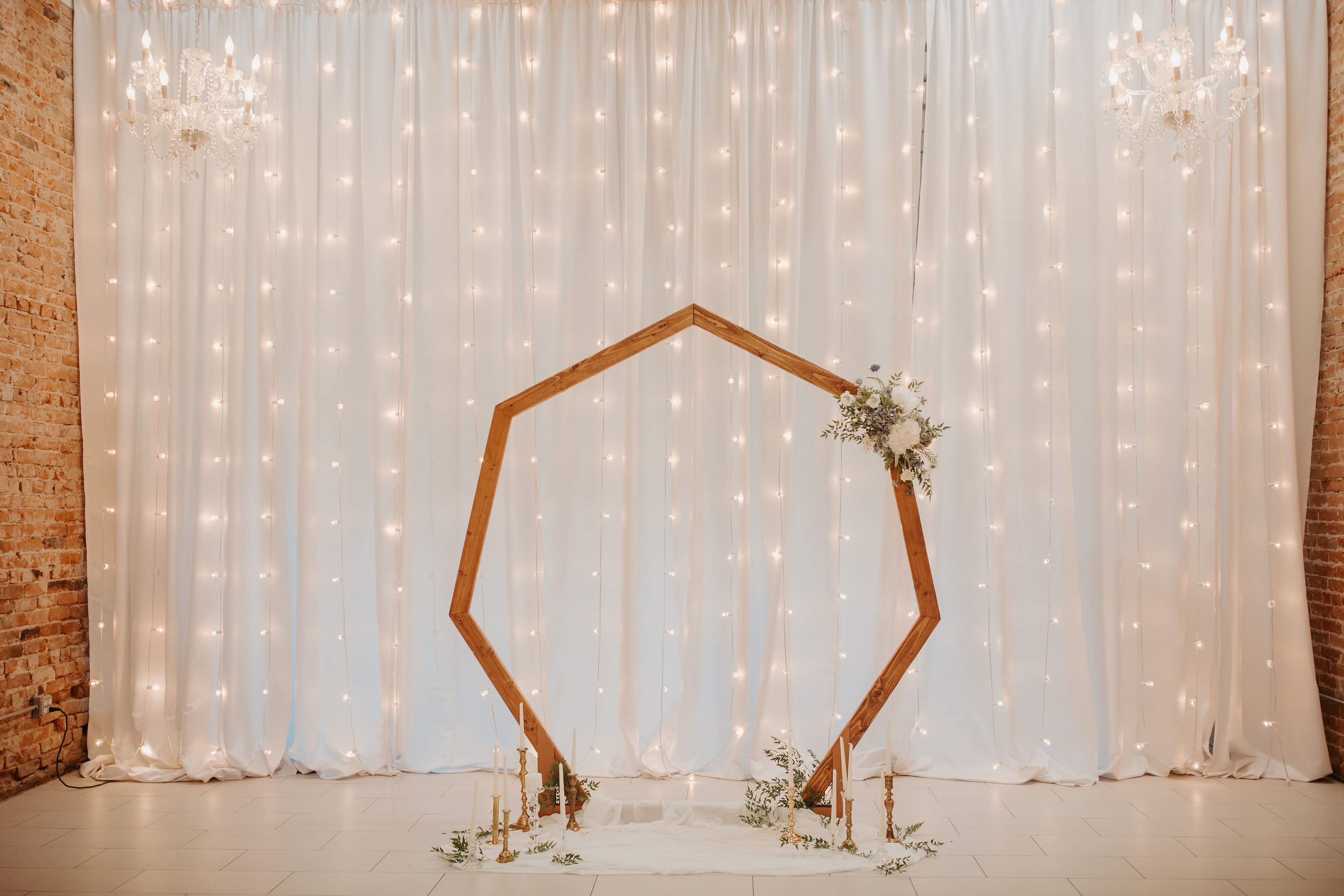This geometric wooden arch provides a beautifully modern approach to any ceremony, venue, or backdrop.