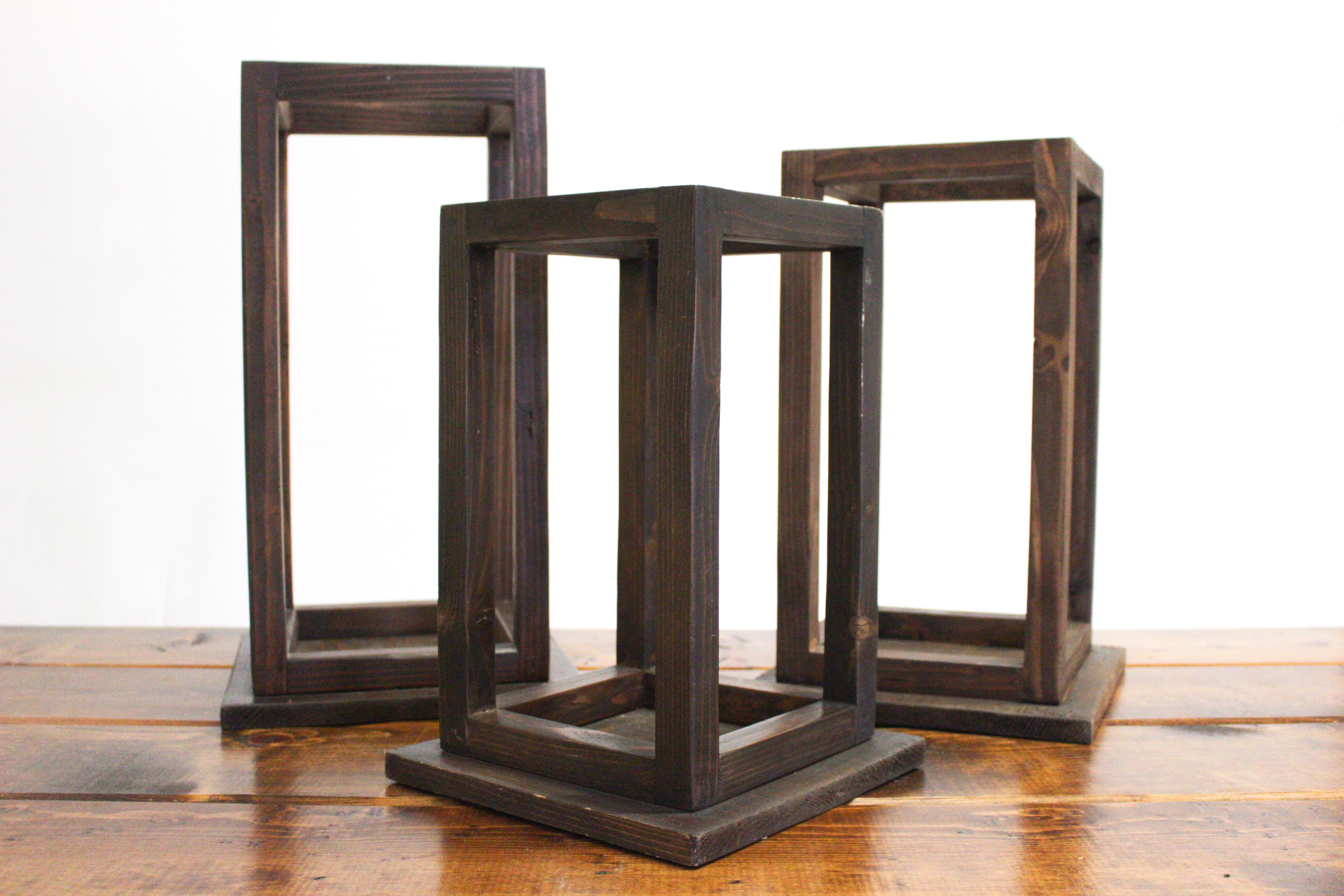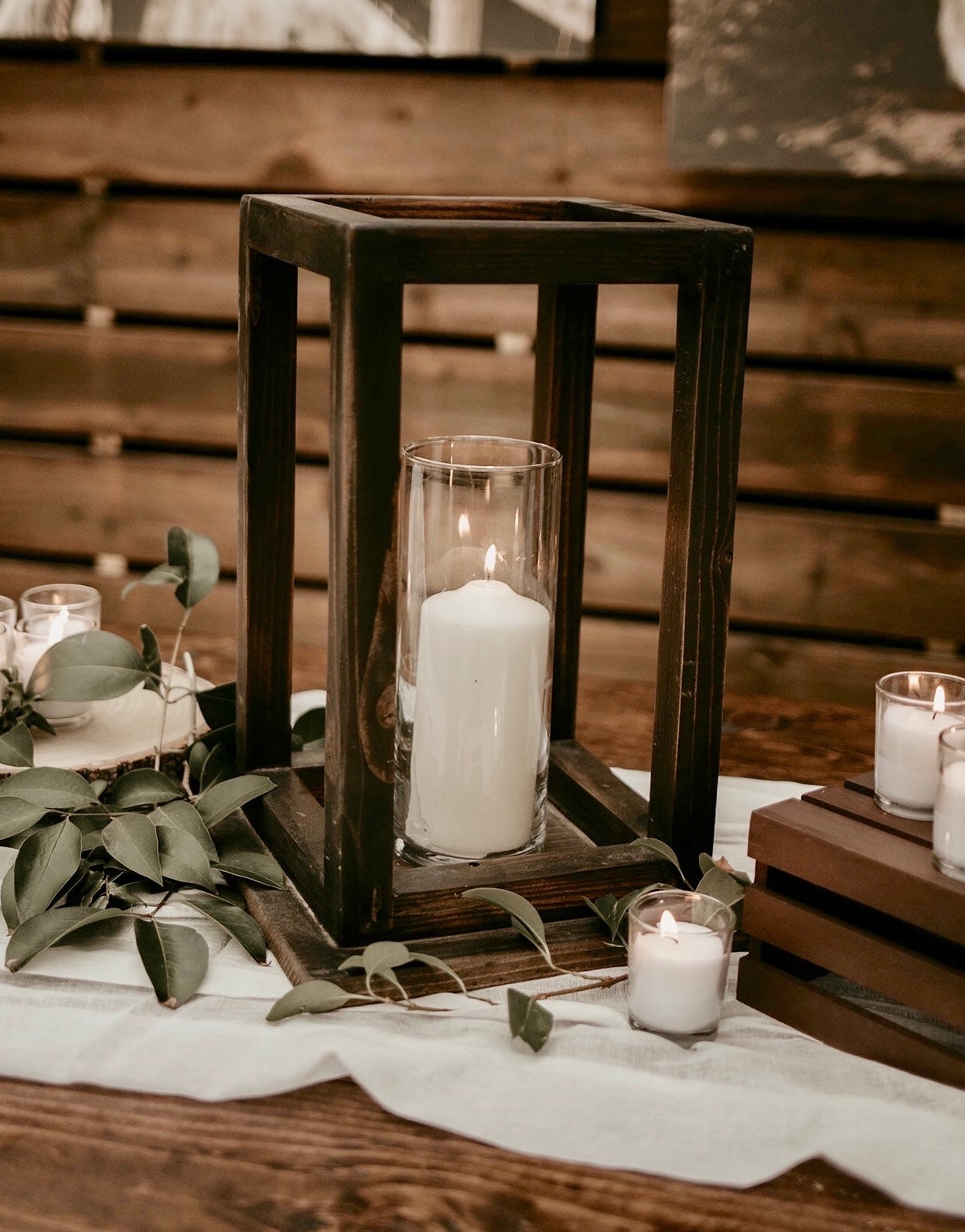 These wooden and vertically rectangular lanterns are perfect for any centerpiece or table decoration.