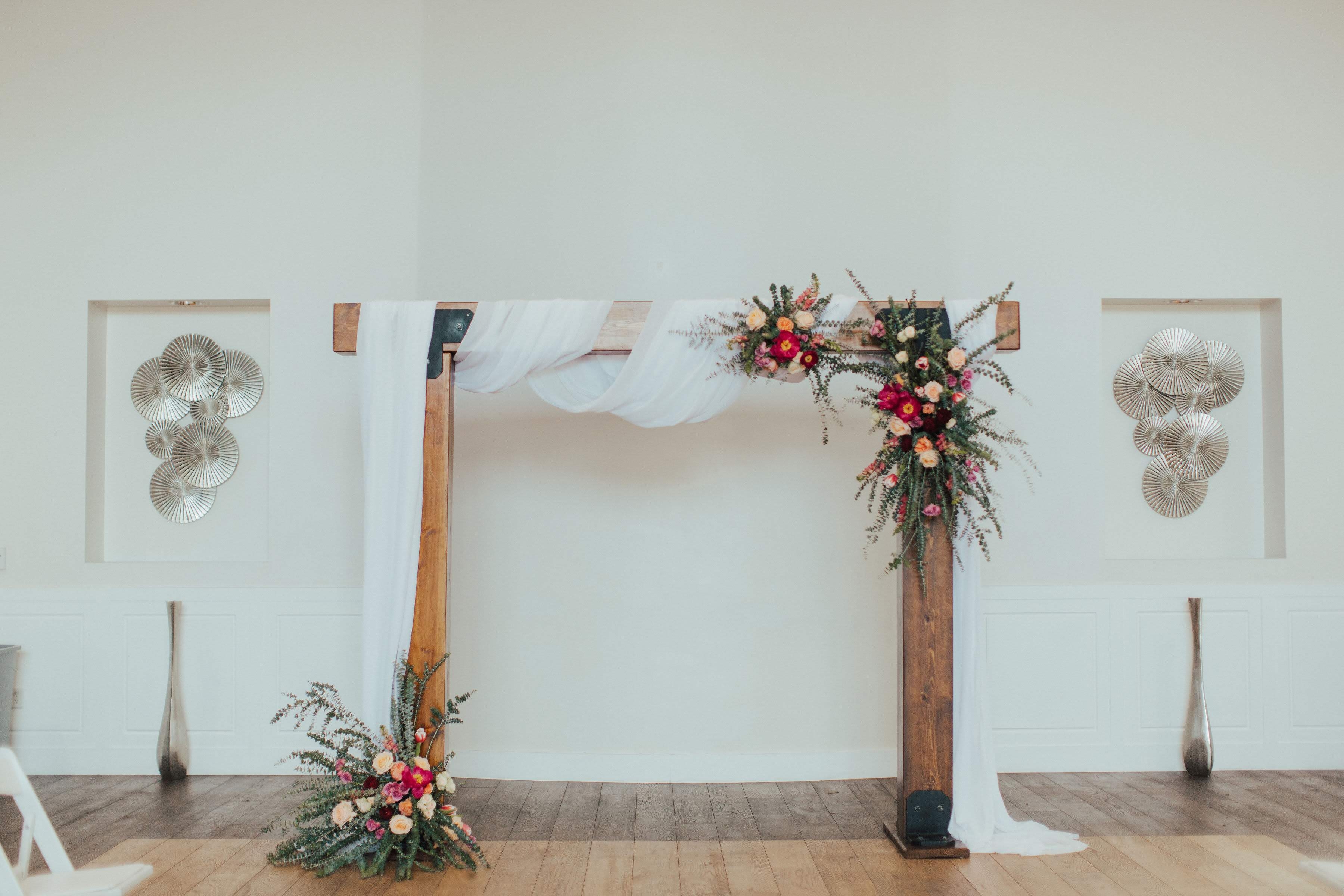 This piece was hand-crafted by our master carpenter to serve as a centerpiece at your wedding ceremony or reception. Our Wood Beam Arch serves as an excellent ceremonial arch or a charming entry way for your event. Our team handles the set up and placement of this piece it is heavy!
