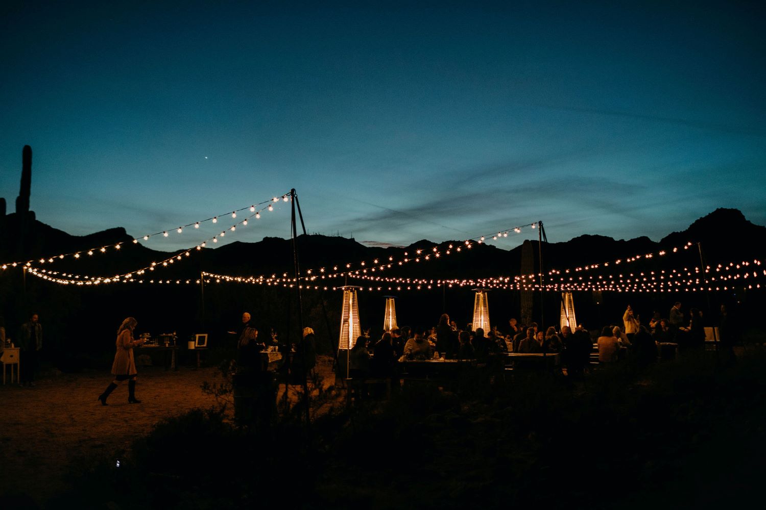 Summer events (June–September): Daytime temperatures regularly exceed 105°F. Schedule your ceremony and reception for the evening — 6pm or later — and ensure your venue has shade or covered areas for guests. Our patio heaters aren’t needed in summer, but our bistro lighting creates a beautiful ambiance for warm Phoenix evenings.